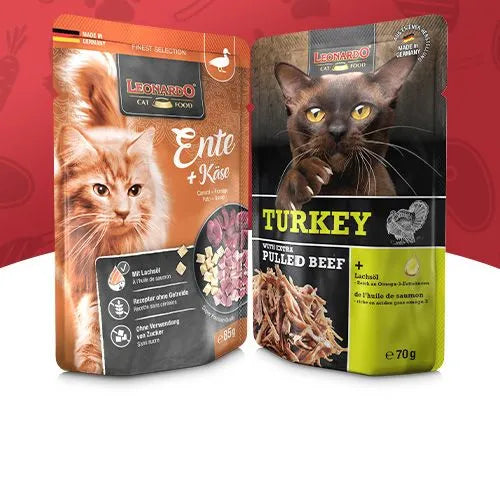 I gatti amano LEONARDO! E per una buona ragione: perché il nostro cibo per gatti è prodotto con amore con ingredienti di alta qualità nei nostri stabilimenti del Münsterland, in Germania, senza coloranti, aromi o conservanti artificiali. E naturalmente senza test sugli animali! Ma con carne fresca extra proveniente dalla nostra preparazione di carne.