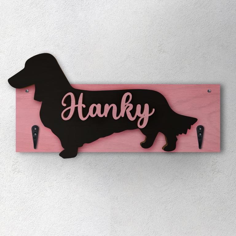 Porta guinzaglio razza cane Bassotto Tedesco a Pelo Lungo personalizzato con il nome del tuo cane.
