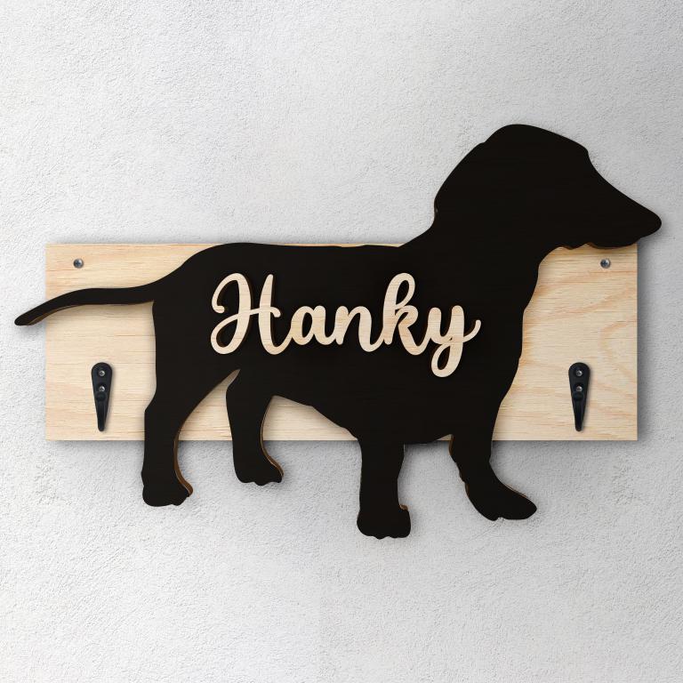 Porta guinzaglio razza cane Bassotto Tedesco personalizzato con il nome del tuo cane.