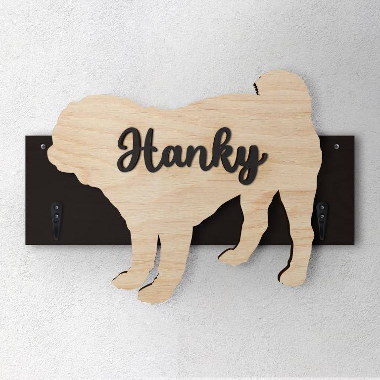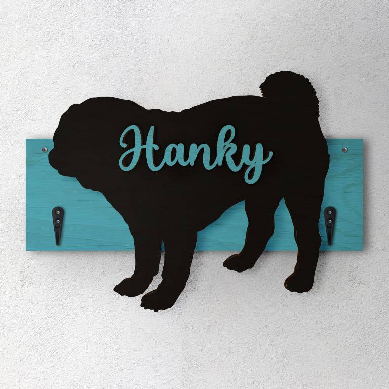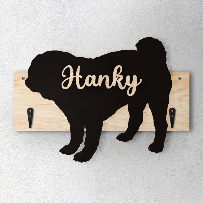 Porta guinzaglio razza cane Carlino personalizzato con il nome del tuo cane.