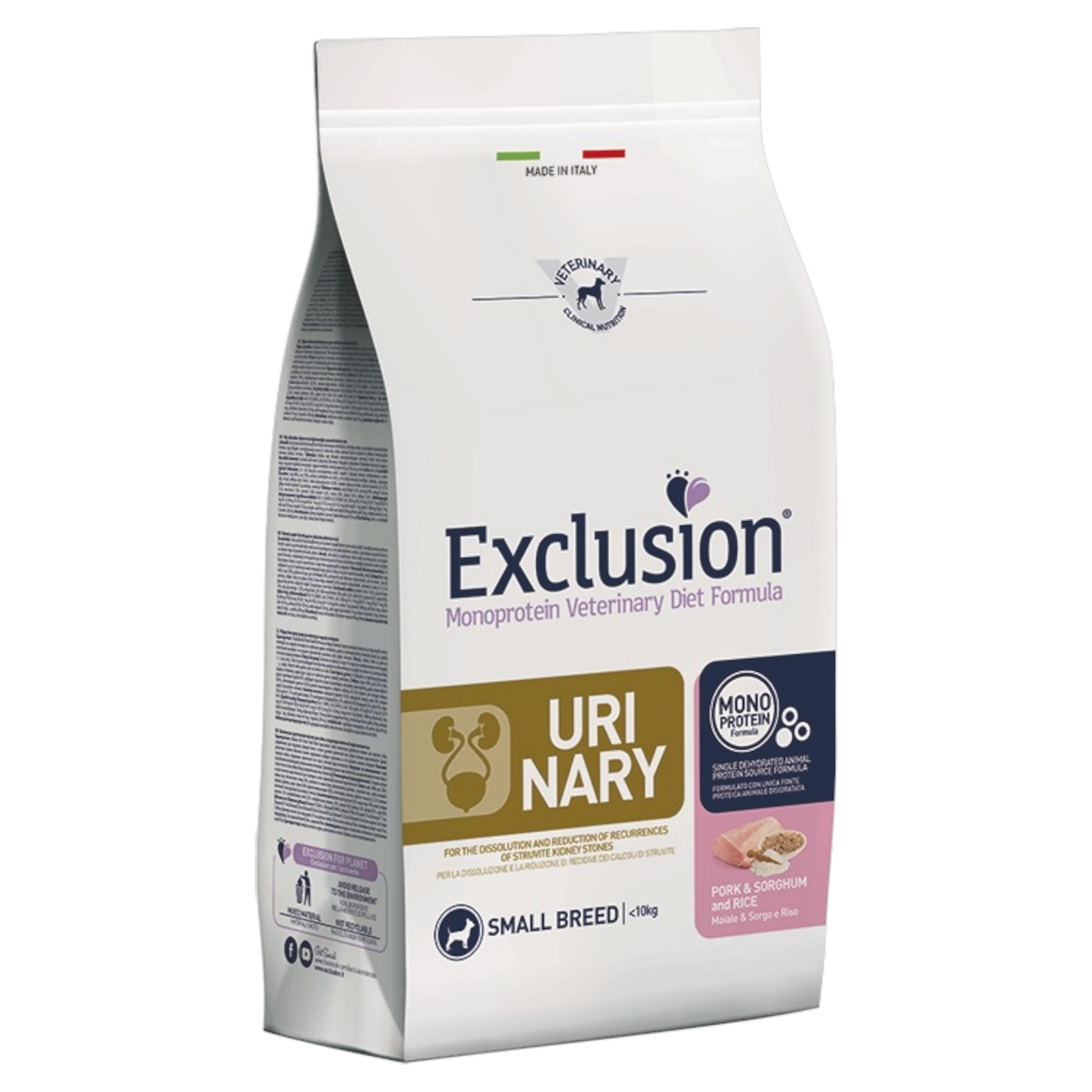 EXCLUSION Cane Urinary Small Maiale, Sorgo e Riso 2Kg