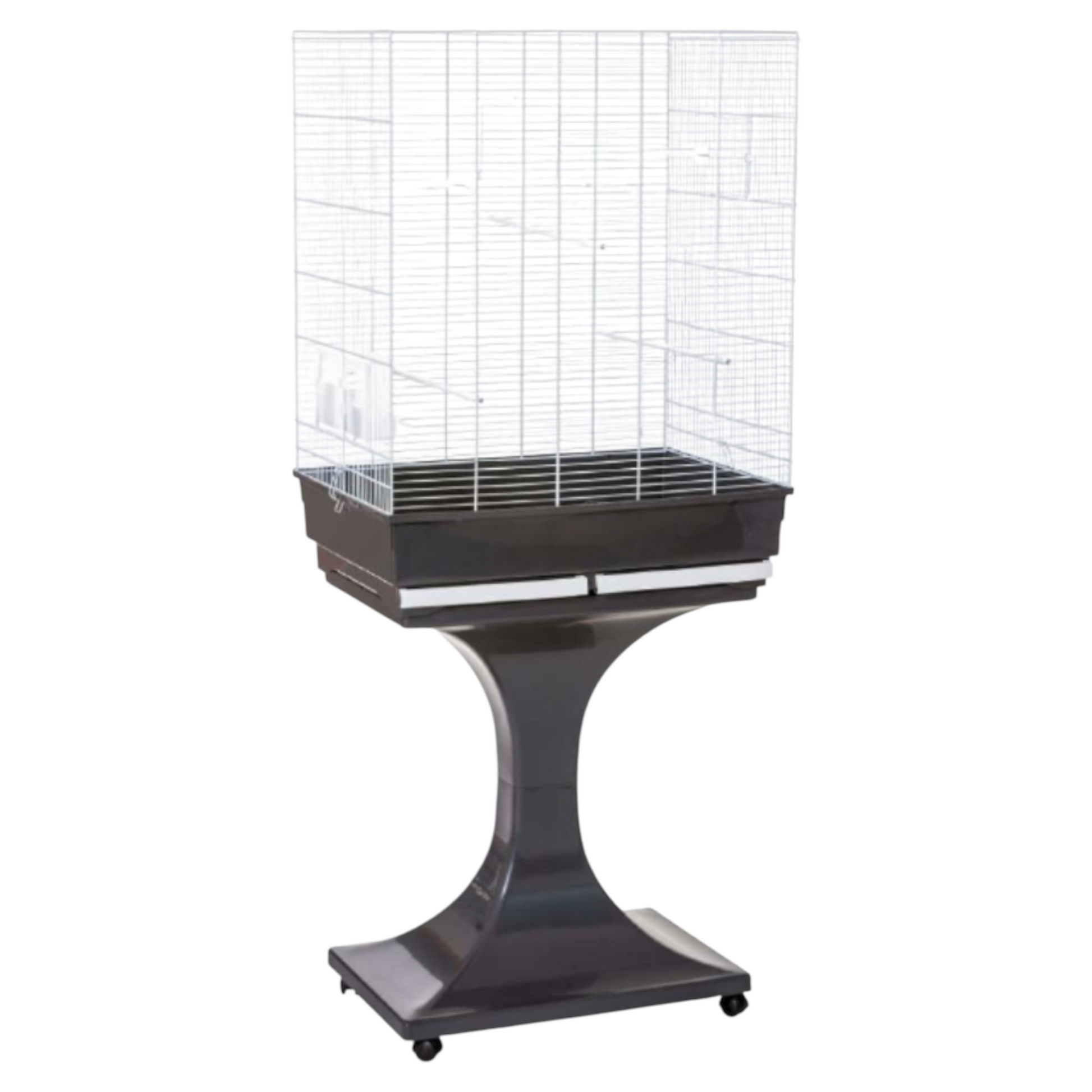 Gabbia con stand per uccelli di taglia piccola e media, completa di accessori. Made in Italy.