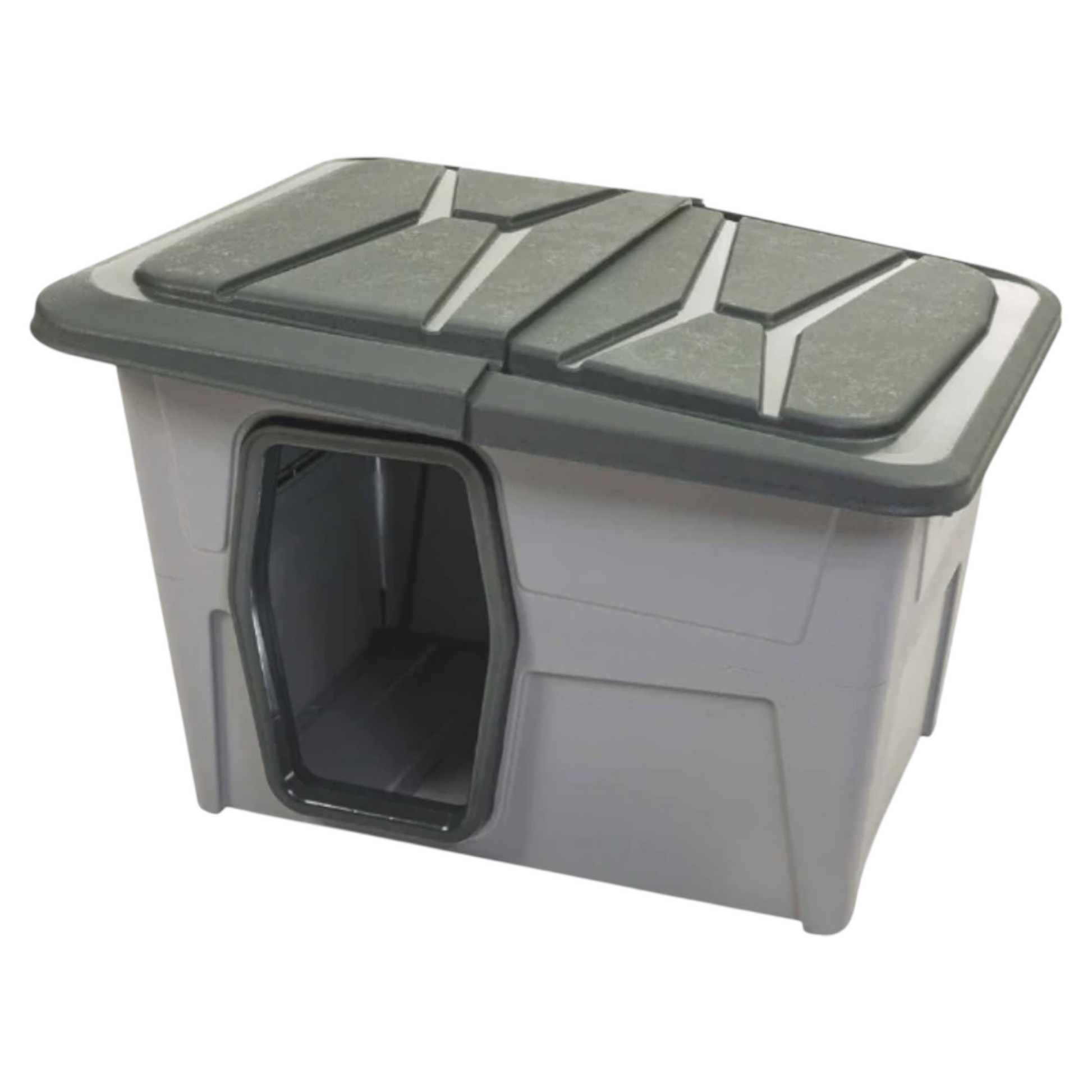Cuccia esterna a forma di casetta "Baraka" per cani e gatti, realizzata con plastica riciclata, ideale per riparare il tuo amico a quattro zampe sia dalle giornate invernali, fredde e umide, che dalle giornate estive, calde e afose. Inoltre, il tetto della cuccia è rimovibile, così da permettere una pulizia dell'interno più rapida ed efficace.