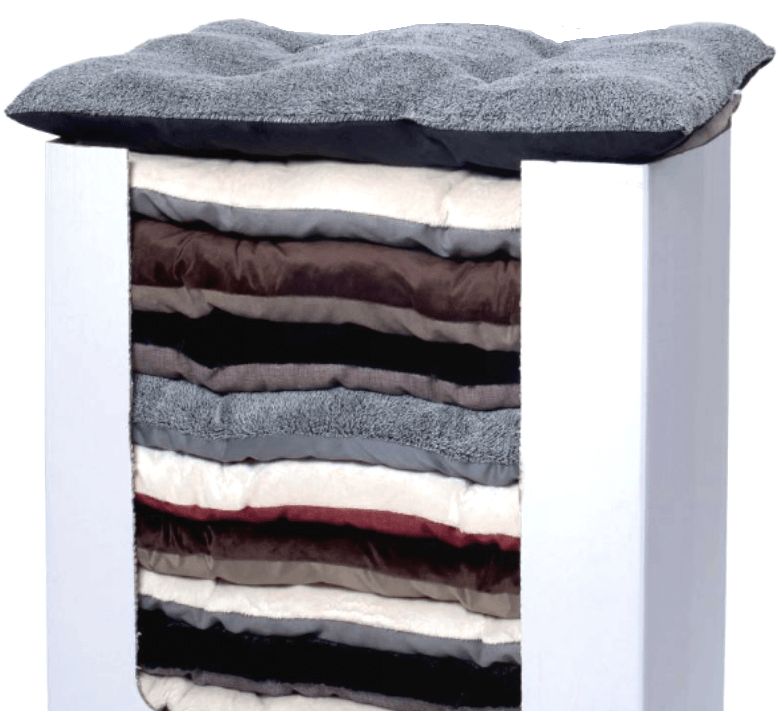 Cuscino rettangolare imbottito con morbida fibra di poliestere, realizzato met?? in tessuto tinta unita e met?? pelliccetta abbinata.