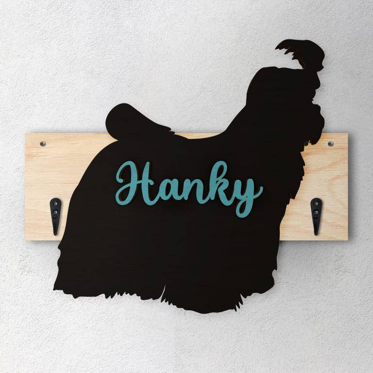 Variante C: Base Legno - Cane Nero - Nome Blu;