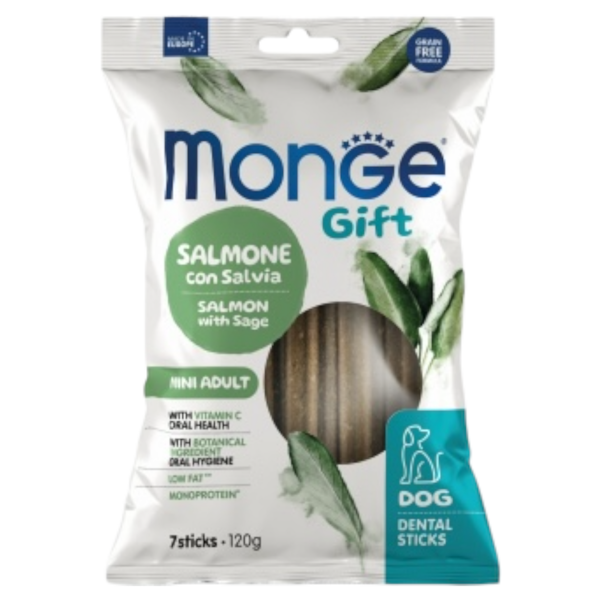 MONGE Gift Cane Dental Mini Adult Salmone con Salvia 120gr