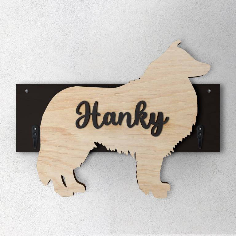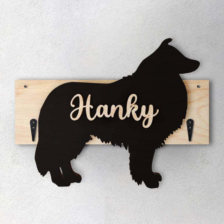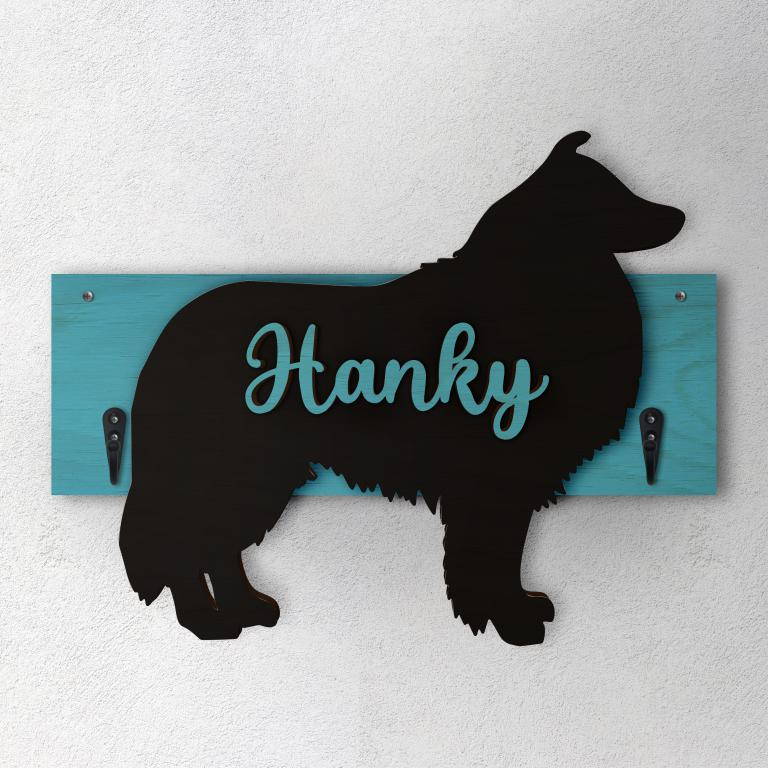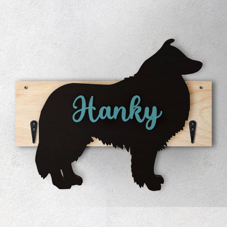 Porta guinzaglio razza cane Pastore Scozzese personalizzato con il nome del tuo cane.