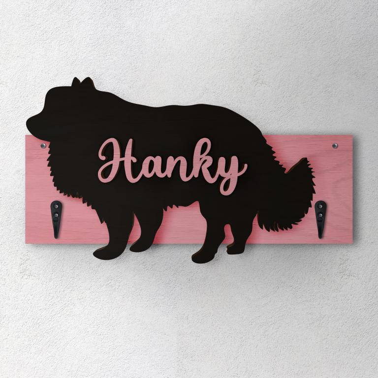 Porta guinzaglio razza cane Pomerania personalizzato con il nome del tuo cane.