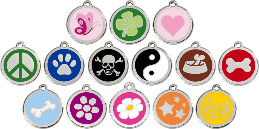 Targhette identificative per animali domestici in acciaio inossidabile e smalto. Progettate per durare tutta la vita, le nostre targhette non si arrugginiscono, non si corrodono e non si rompono. Scegliete tra 100 disegni e colori che si adattano alla personalità o al tema del vostro animale.