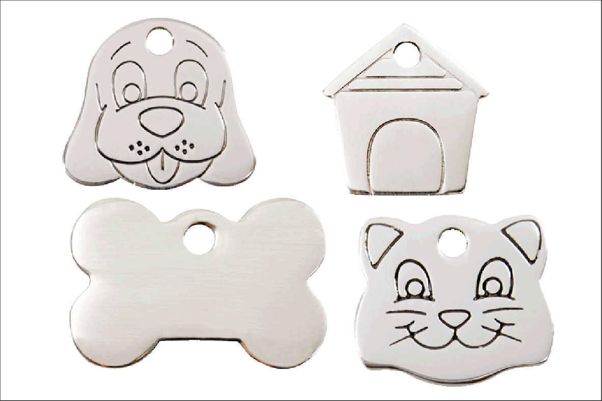 Targhette identificative per animali domestici in acciaio inossidabile e smalto. Progettate per durare tutta la vita, le nostre targhette non si arrugginiscono, non si corrodono e non si rompono. Scegliete tra 100 disegni e colori che si adattano alla personalità o al tema del vostro animale.