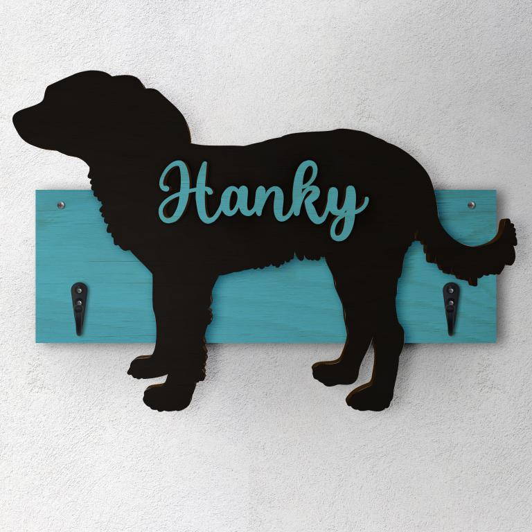 Variante C: Base Legno - Cane Nero - Nome Blu;